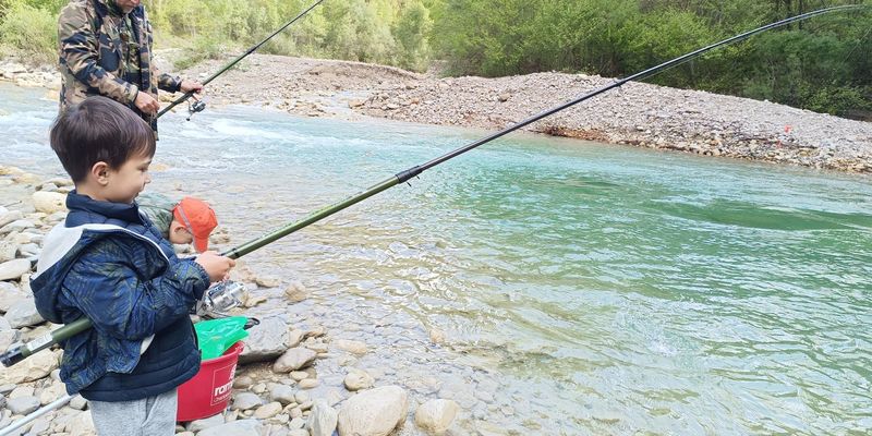 Découverte de la pêche pour les enfants, stands dédiés aux techniques de pêche animée par l'AAPPMA "La truite saumonée"