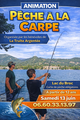 Animation gratuite à partir de 12 ans. Inscription : 06.60.33.13.97 Carte de pêche obligatoire